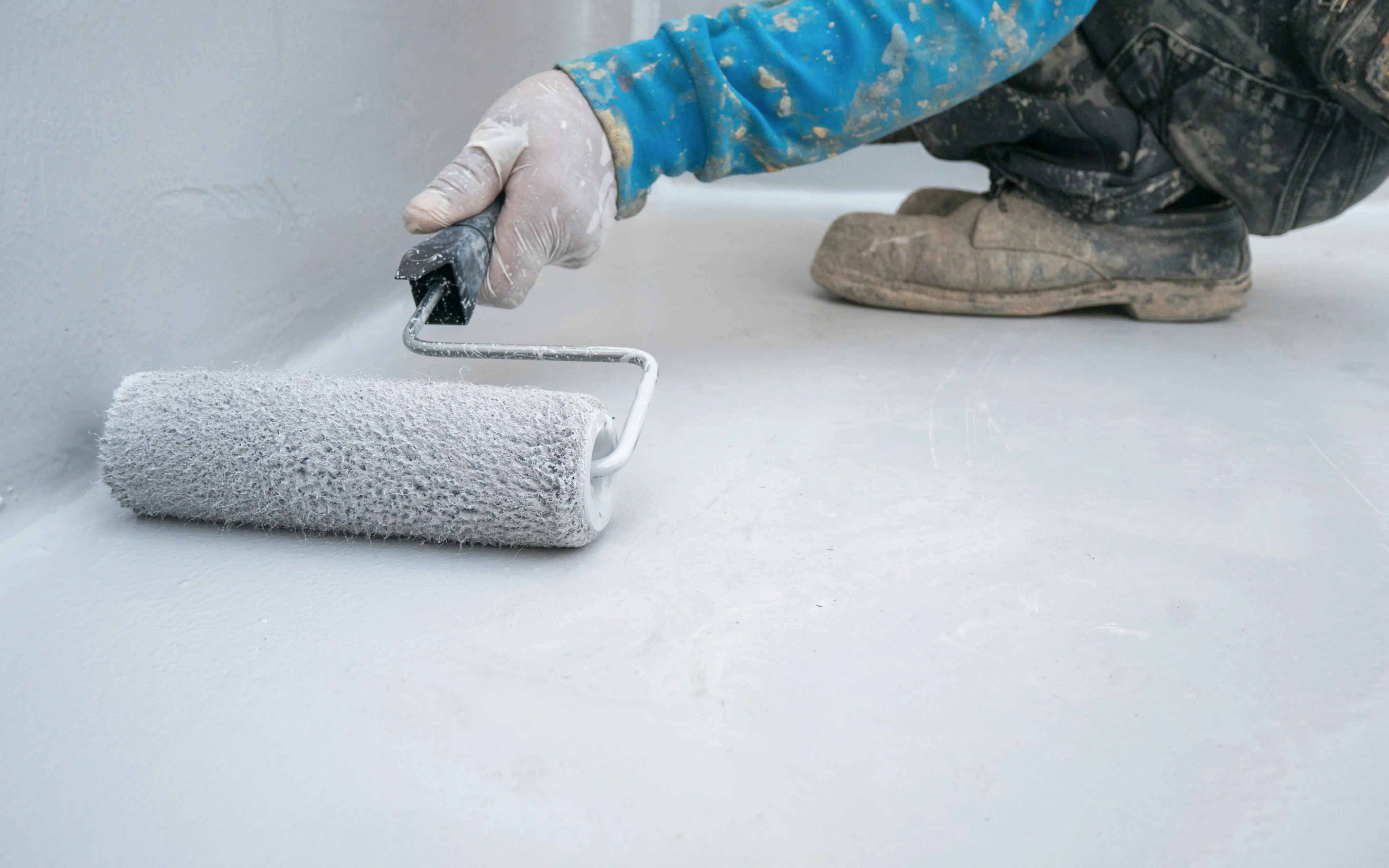 • Нанесение эпоксидного грунта. Улучшается сцепляемость с основанием и повышается устойчивость к влаге.